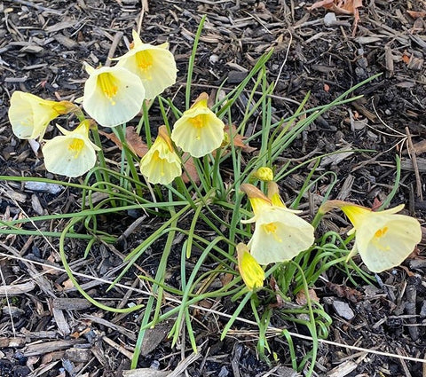 An american-bred daffodil by Grant Mitch, Oregon, that grows well for us. Registered in 1988. It is reported that it varies greatly in color depending on temperature. Belongs to the Cyclamineus group.